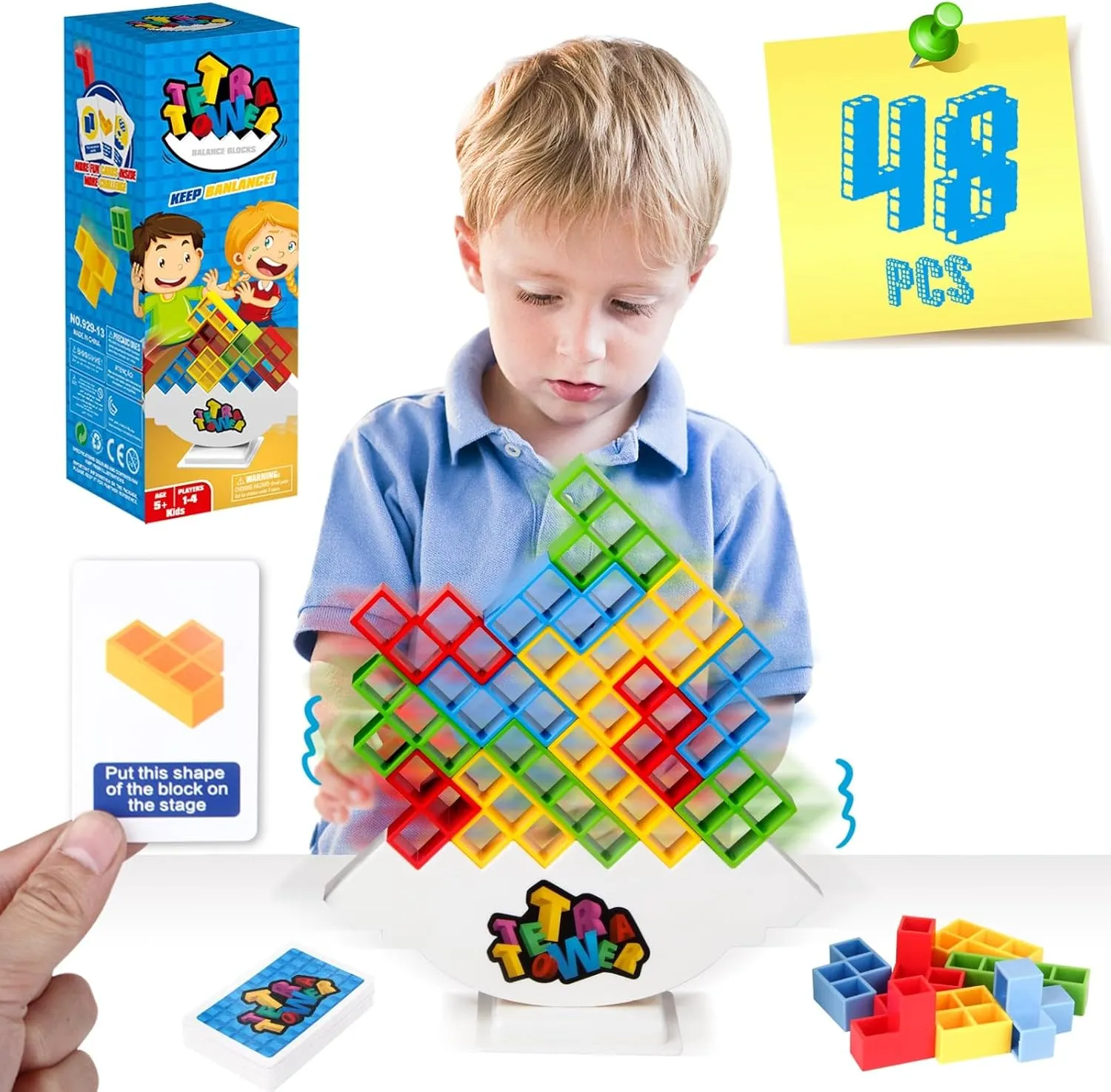 HOMELAM 48 PCS Tetra Tower Game, Balance Stacking Blocks Game Board Games for Kids & Adults – 2+ Players Stack Attack Game for Family, Party, Friends, Travel, Team, Christmas